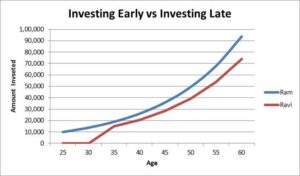 Let’s put this in context. A 22-year-old who puts $2,000 a year into an investment for ten years and then stops could have more money by age 65 than someone who waits until their thirties, puts $2,000 a year into an investment for 30 years straight, and never stops. Doesn’t that seem crazy? But when you add up the figures and allow compounding do its thing, people who start early often finish ahead of those who start late.